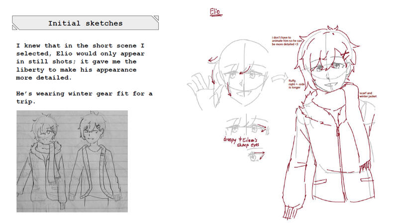 A short animation that I created as an assignment for Animation at Agincourt Collegiate Institute. I wrote a short story, designed original characters, and animated a part of the story.A fluffy slice-of-life focusing on the aloof Eileen's reminiscence while her sunny best friend Elio is away on a trip.[link to story details and design process]